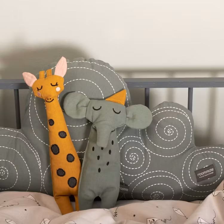 Söt giraff tillverkad av organisk bomull med polyesterfyllning och fina tryckta detaljer. OEKO-Tex standard 100. Rengöring:°30 C handtvätt i maskin och hängtork.Storlek: 30 cmFrån: +3 månader.