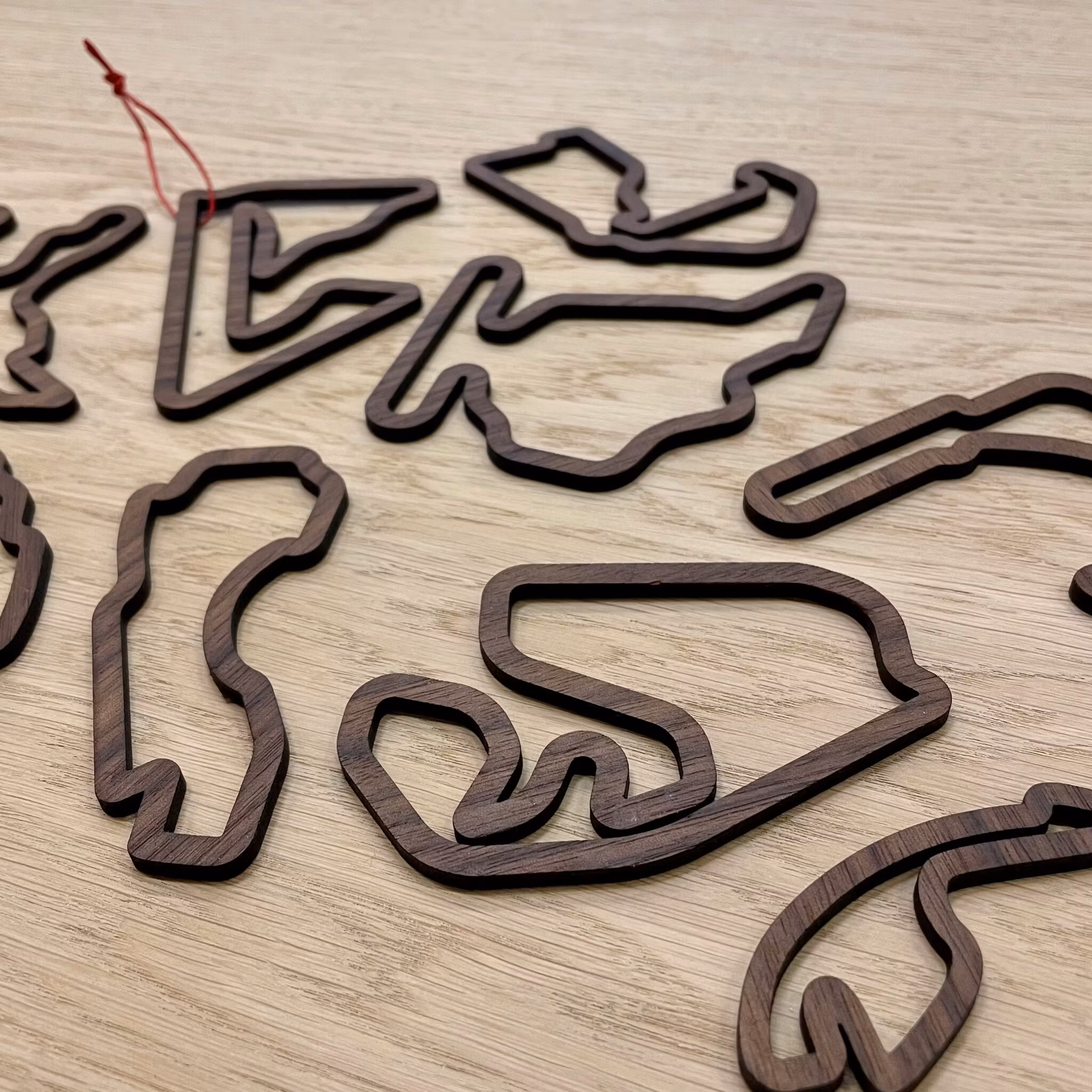 Ge din julgran ett unikt och lyxigt utseende med våra exklusiva julhängen av oljad valnöt, var och en designad med olika Formel 1-banor. Dessa eleganta och handgjorda juldekorationer är det perfekta sättet att förena din kärlek för racing med julens festligheter.