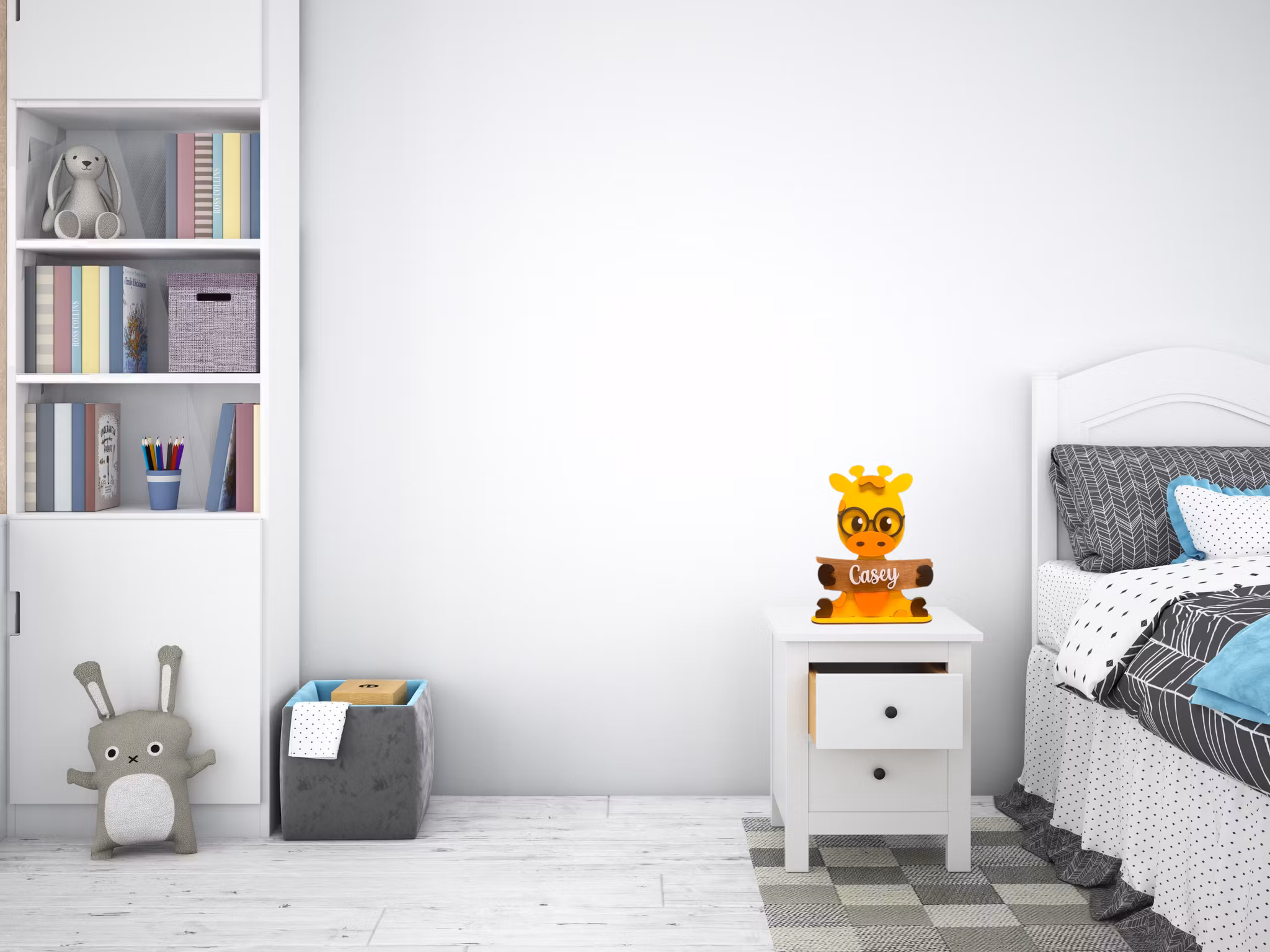 Upptäck förtjusningen av våra stående namnskyltar – ett lekfullt och gulligt tillskott till barnens rum. Varje skylt är omsorgsfullt handgjord för att inspirera unga fantasier och skapa en personlig atmosfär i barnets eget utrymme.