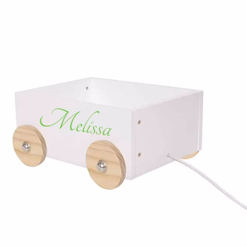 Förutom att den är robust och lätt att förflytta har den även ett personligt namn som gör att det blir lite extra roligt att förvara leksakerna.
